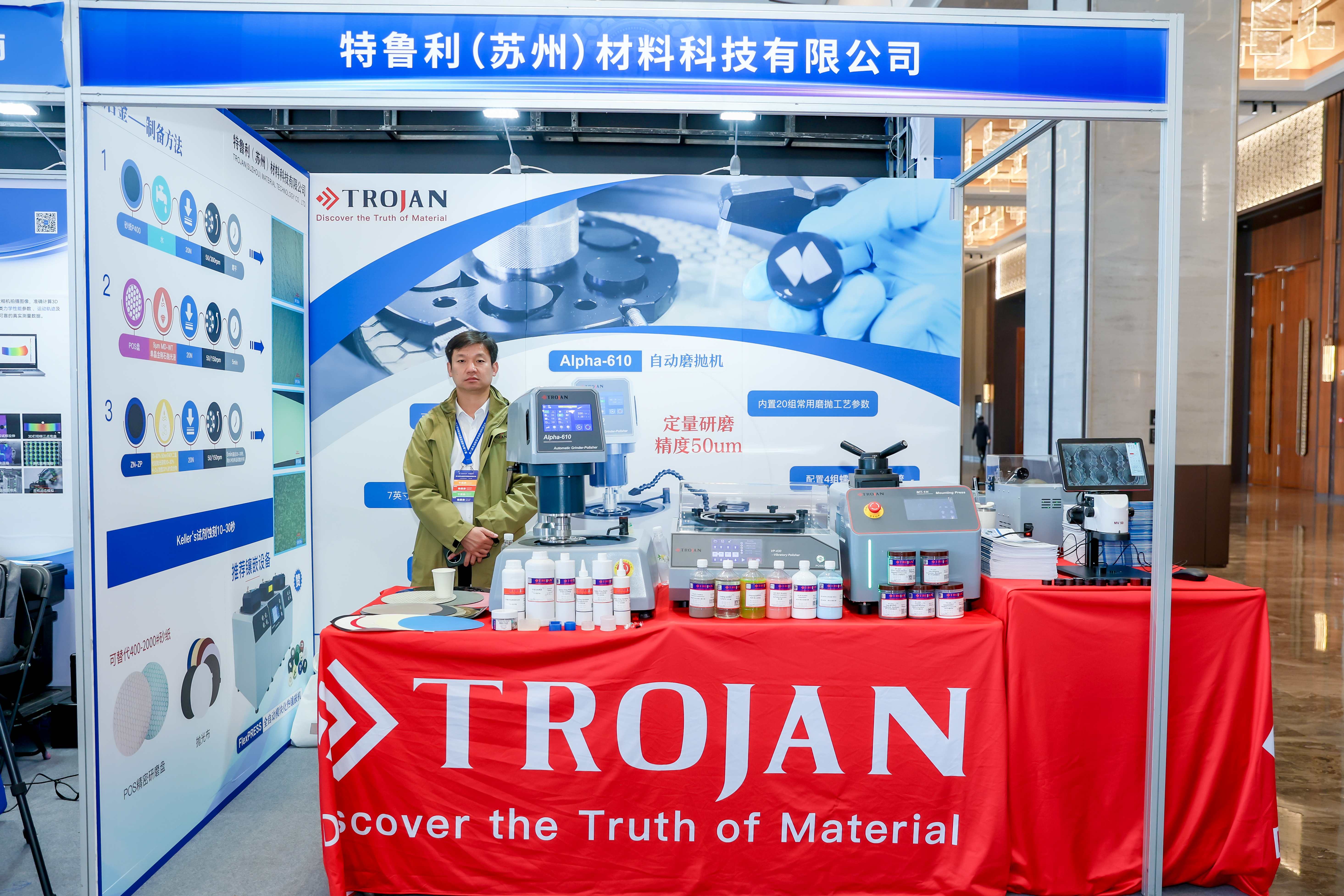 Som en enastående partner till denna konferens visade Trojan upp sin serie lösningar för testning av flygmotormaterial. Flera delar av utrustning, inklusive Alpha-610 Automatisk slipmaskin och polermaskin , VP-430 Vibrationspolerare , och CT-150 Precisionsskärmaskin med låg hastighet , väckte stor uppmärksamhet för sin exceptionella prestation.
